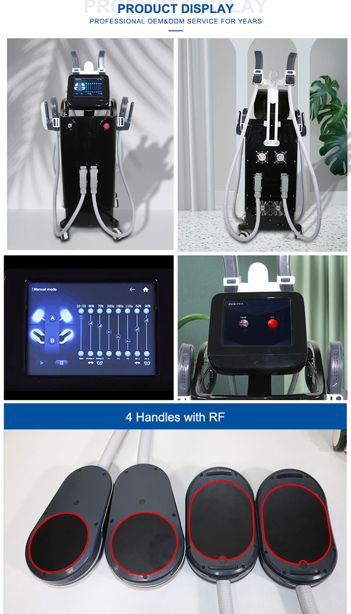 * Comes with 4 handle, allowing treatments for stomach, buttocks, arms and thighs
