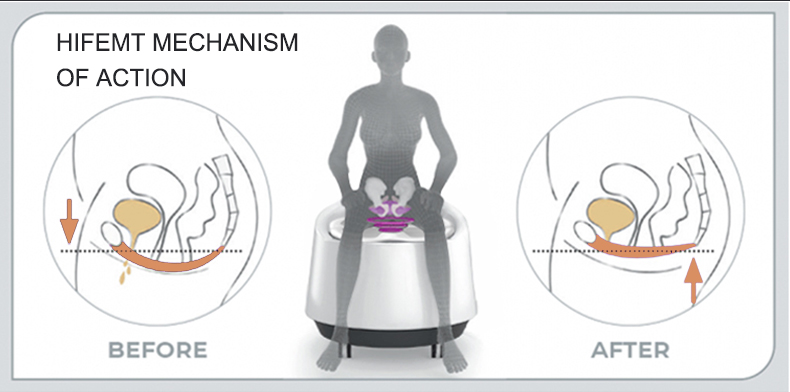 Hiemt body sculpt build muscle machine, it is the latest treatment technology for burning fat, toning muscle, building muscle, body shaping, sculpting body, skin lifting and tightening. HIEMT can lead to a large numeber of fat breakdown which causes fat cells to die and is excreted by the body’s normal metabolism within a few weeks.