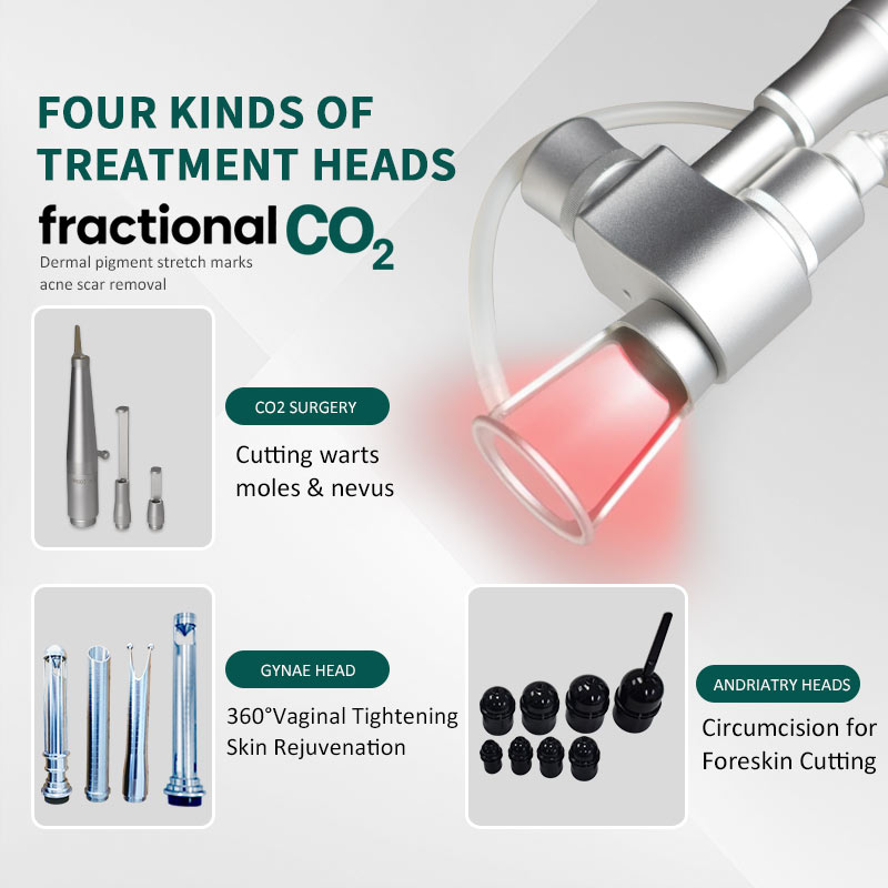 The core Fractional CO2 Head delivers exceptional results for skin resurfacing, effectively treating dermal pigments, stretch marks, and acne scars. For precise surgical procedures, the CO2 Surgery Head is perfect for cutting and ablating warts, moles, and nevi.