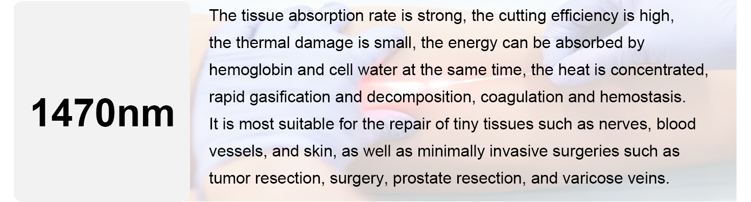 The semiconductor laser therapy device uses a 1470nm wavelength fber-coupled laser to treat the needle witha disposable lipolysis fiber, precisely locates excess fat and fat in the body, directly hits the target tissue fat cellsand rapidly dissolves and liquefies. The instrument mainly acts on deep fat and superficlal fat and transfers theenergy directly to the fat cells for uniform heating. During the heating process, the connective tissue and fat celstructure can be changed bv controlina the heat. and the adipose tissue has a photothermal effect so that thefat is dissolved). And the photodynamic effect (separating the fat cells from the normal tissue) decomposes thefat cels to make them evenlv liquefied, and the fat liquid is excreted through the ultra-fine positioning needle.which fundamentally reduces the number of fat cells, effectively avoids postoperative rebound.